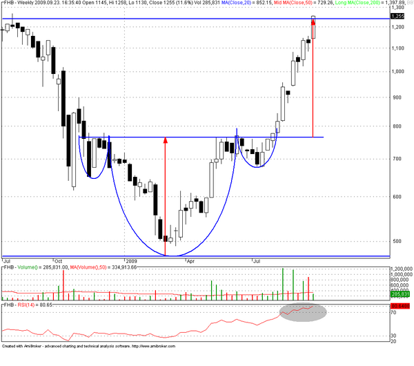 2009. év elejétől szemlélve már az első vásárlásom (még a kitörés előtt) idején egy fordított fej vállakat véltem látni a grafikonon. A nyakvonal áttörésekor vettem a második pakkot, mégpedig stop megbízással. Arra számítottam ugyanis, hogy ha az árfolyam áttöri a nyakvonalat, akkor hirtelen meglódulhat az árfolyam, s kimaradok egy jó hízlalási lehetőségből.